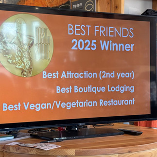 Julie Barger with Best Friends Animal Society then told us the great news! BFAS was the 2025 Winner for Best Attraction. The Roadhouse received an award for Best Boutique/ Lodging, and Angel Village won for Best Vegan/Vegetarian Restaurant. Congrats everyone for being the “top dog”!